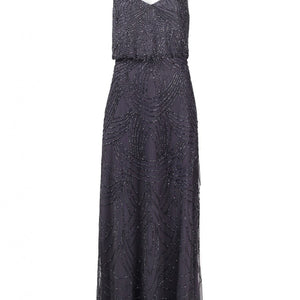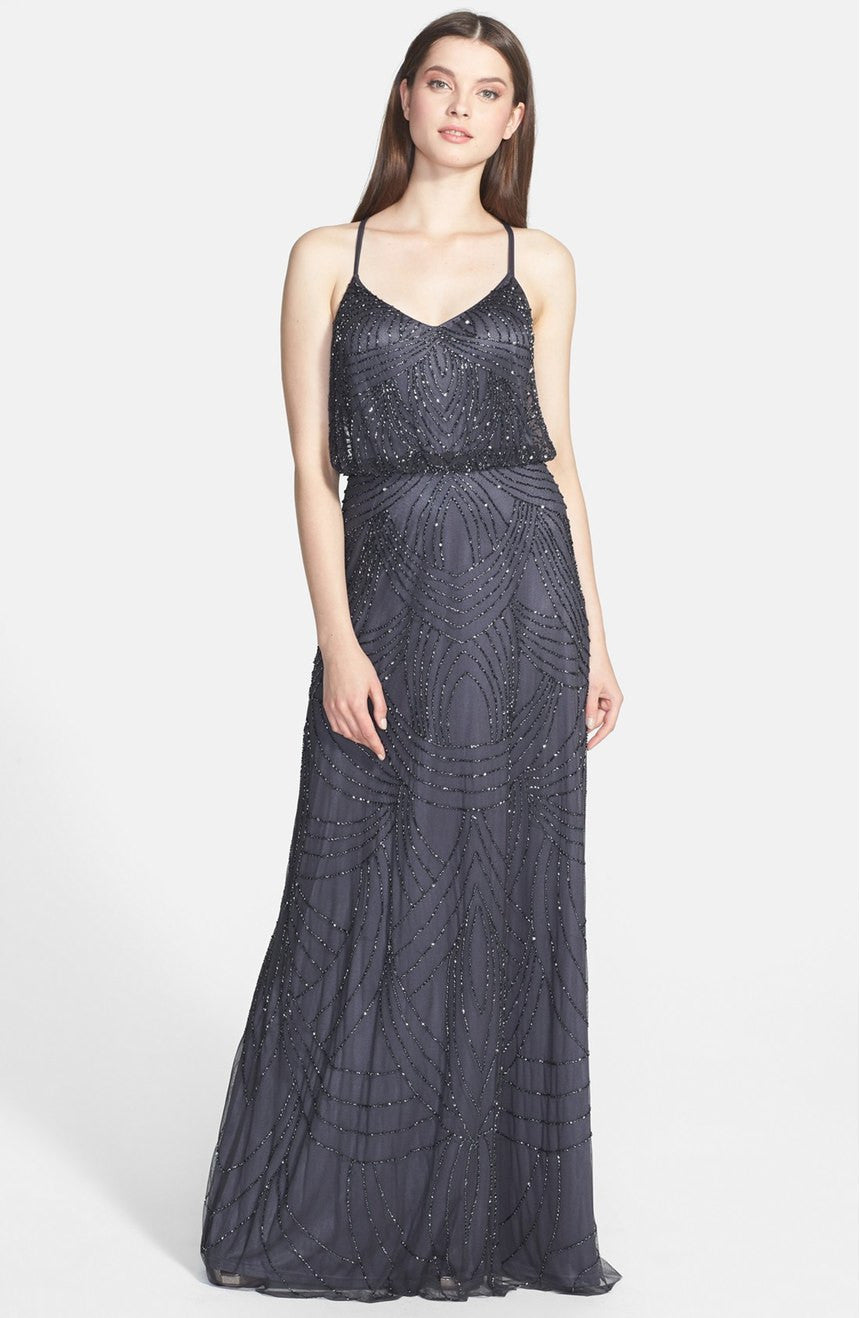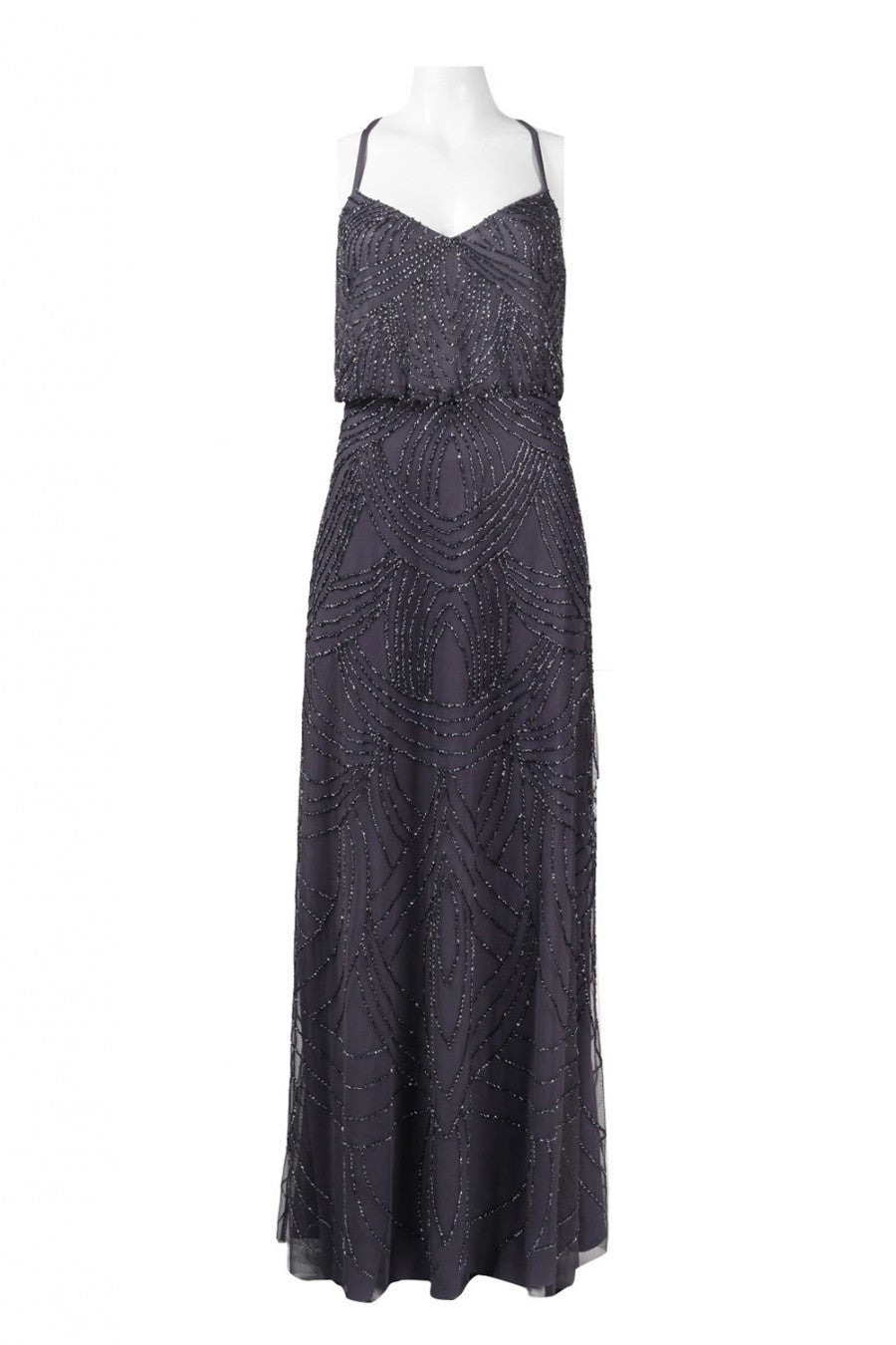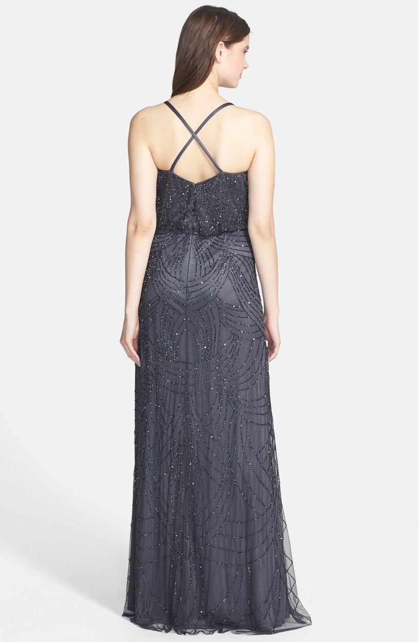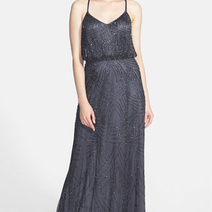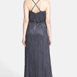 Adrianna Papell Beaded Chiffon Blouson Gown - Gunmetal