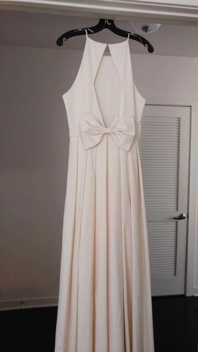 - Bow in back can be removed; using an experienced tailor to remove is recommended