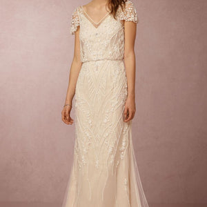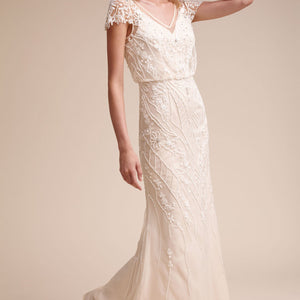 We have a soft spot for expert craftsmanship, which is why we can't resist this intricately beaded Etoile gown. Complete with sheer cap sleeves and soft nude lining, this little number was made to be adored.