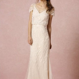 US Size 2. Brand new, with tags. May have been tried on in store, but appears to be in brand new condition. It does come with a little satchel of extra beads if needed. Retail price: $1,000.