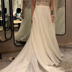 Size 4 and 14. Has been tried on in store, but in excellent condition. Very minor dust along the hemline. Color: Ivory/Almond. Retail price: $995!