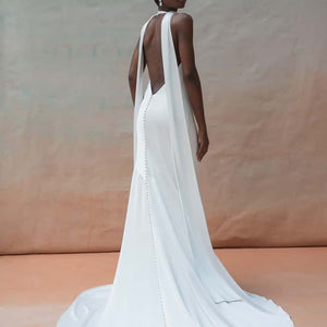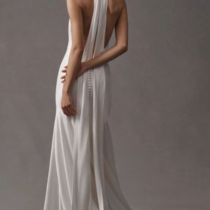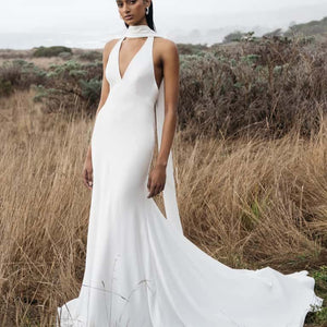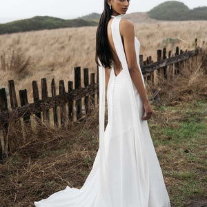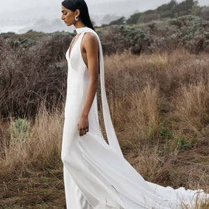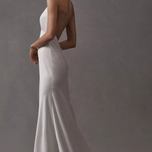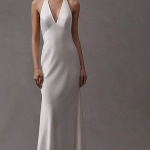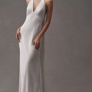 The Jennifer bridal gown evokes the effortless, cool girl style of a 90’s red carpet. Cut in our sumptuous luxe satin fabric, this slinky number highlights every curve while the plunging V neck and open back show off just the right amount of skin for a classically sultry effect.
