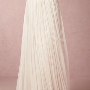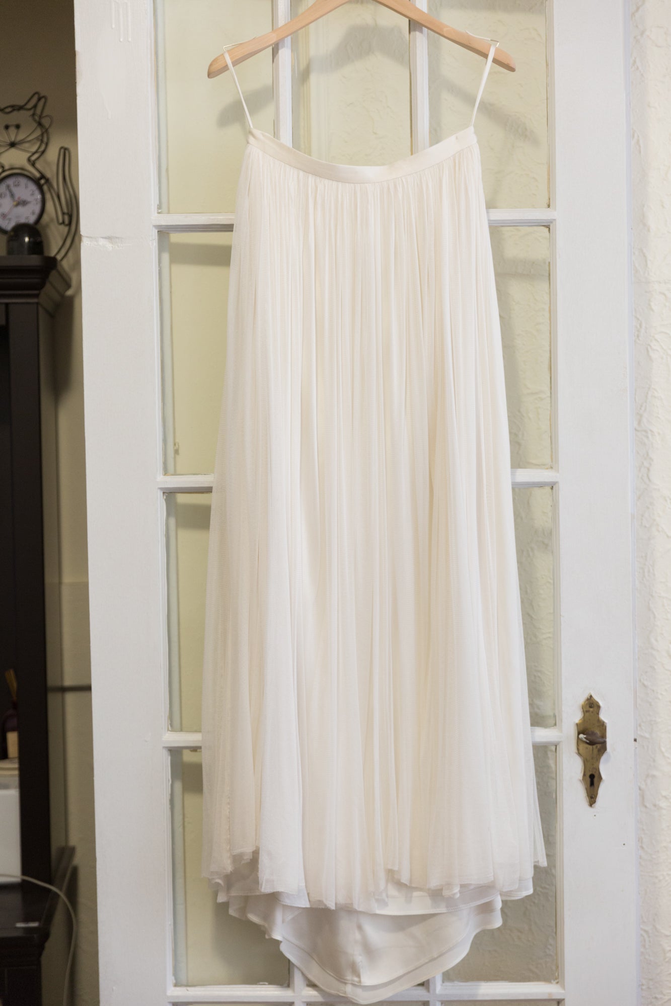 Gracefully pleated ivory silk tulle flows from the satin waistband to the toe-skimming hem of this exquisite skirt.