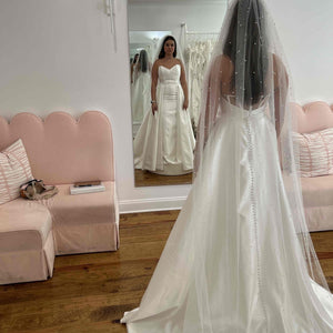 Has been tried on in store, but appears to be in like new condition. Retail price: $3,200.