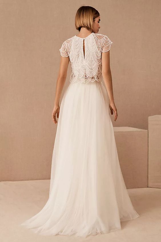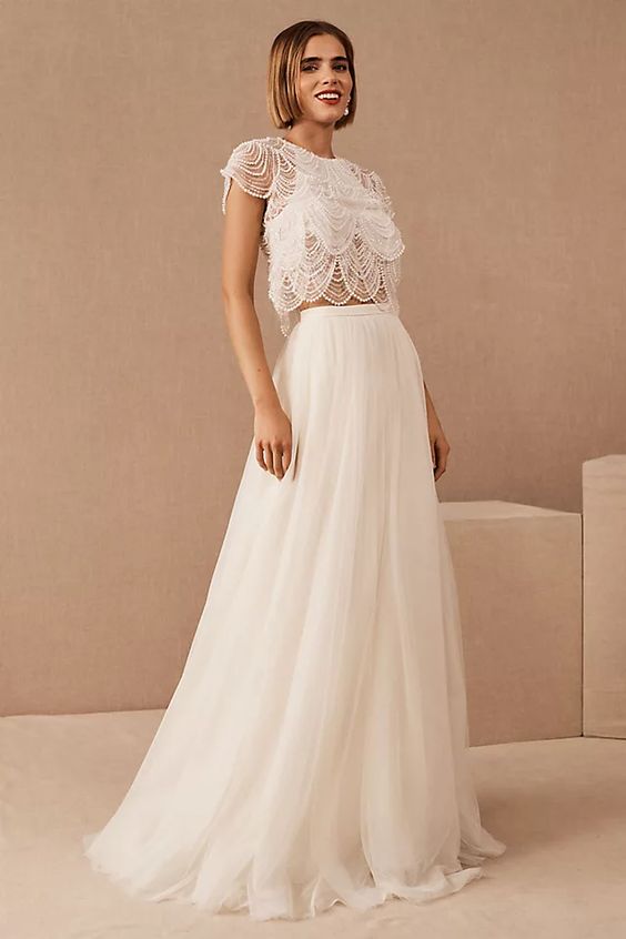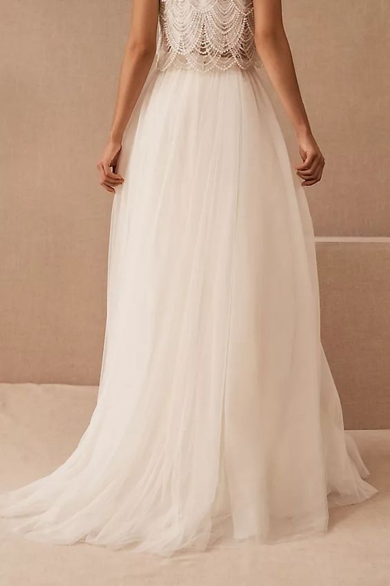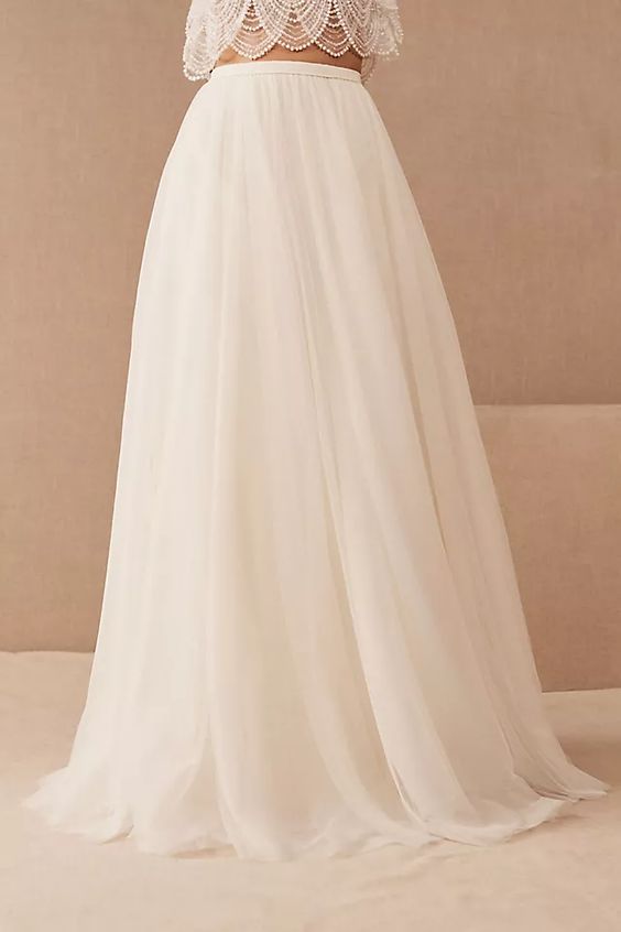 Create your own romantic bridal look by pairing this classic tulle A-line skirt with an intricately embellished top.