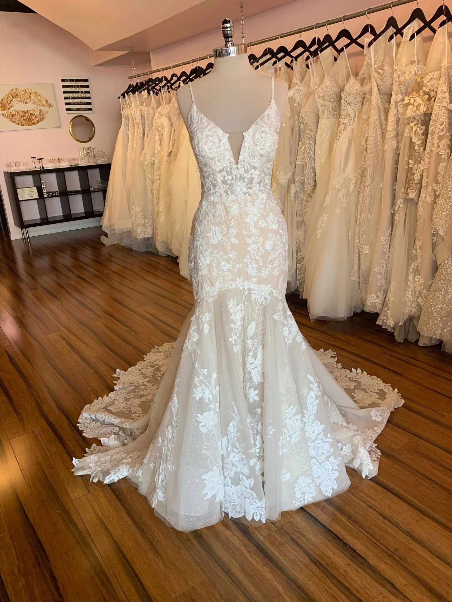 Sample gown that has been tried on in store. Overall in excellent condition. Retail price: $3,400.