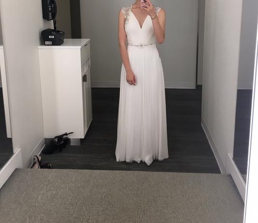 US Size 4 (UK Size 8). Brand new, with tags. May have been tried on in store, but in excellent condition. The skirt is a little wrinkled and will need to be steamed before your wedding. Otherwise it's in excellent condition. Never worn outside the salon and never altered. Retail price: $1,800!