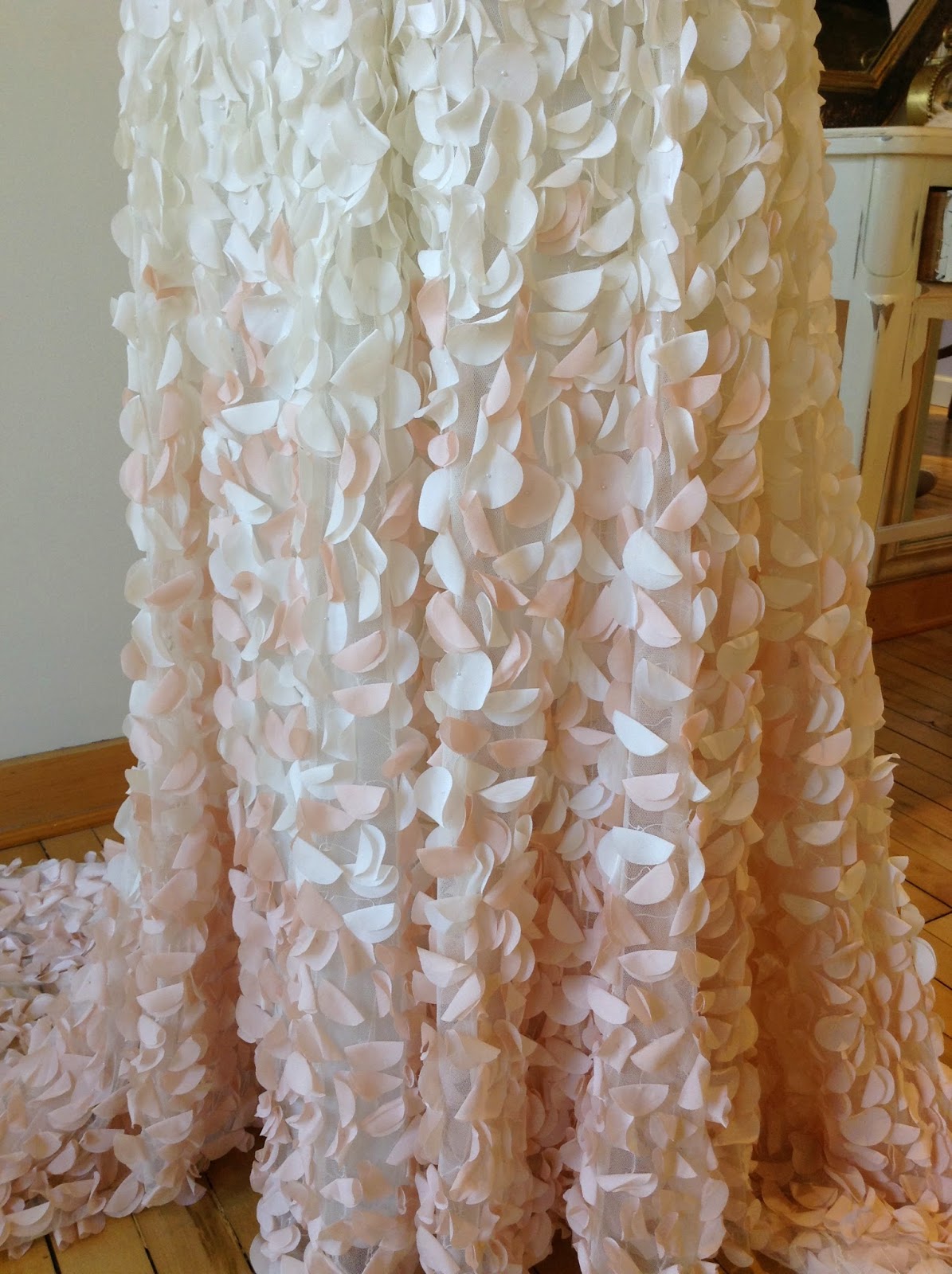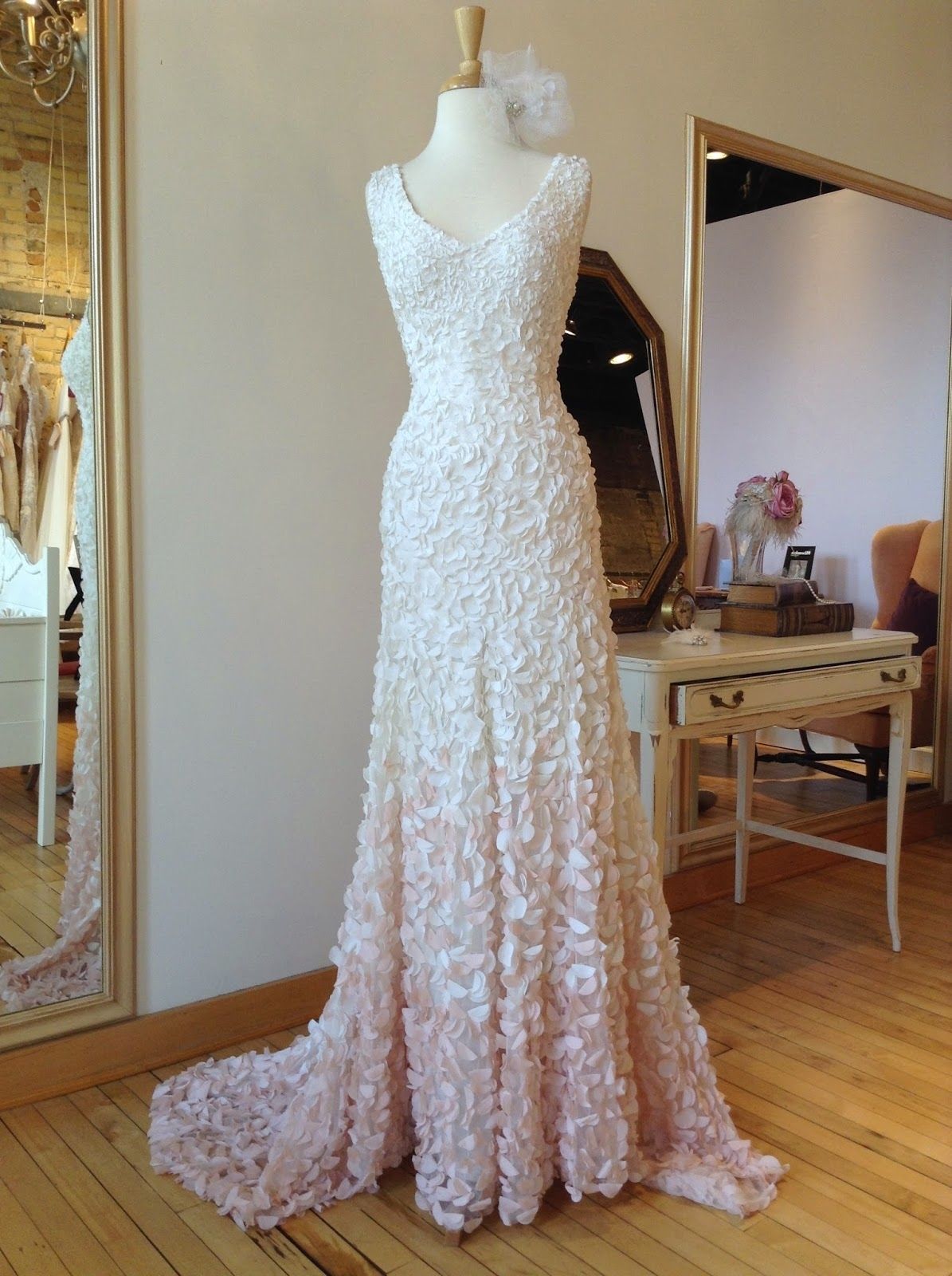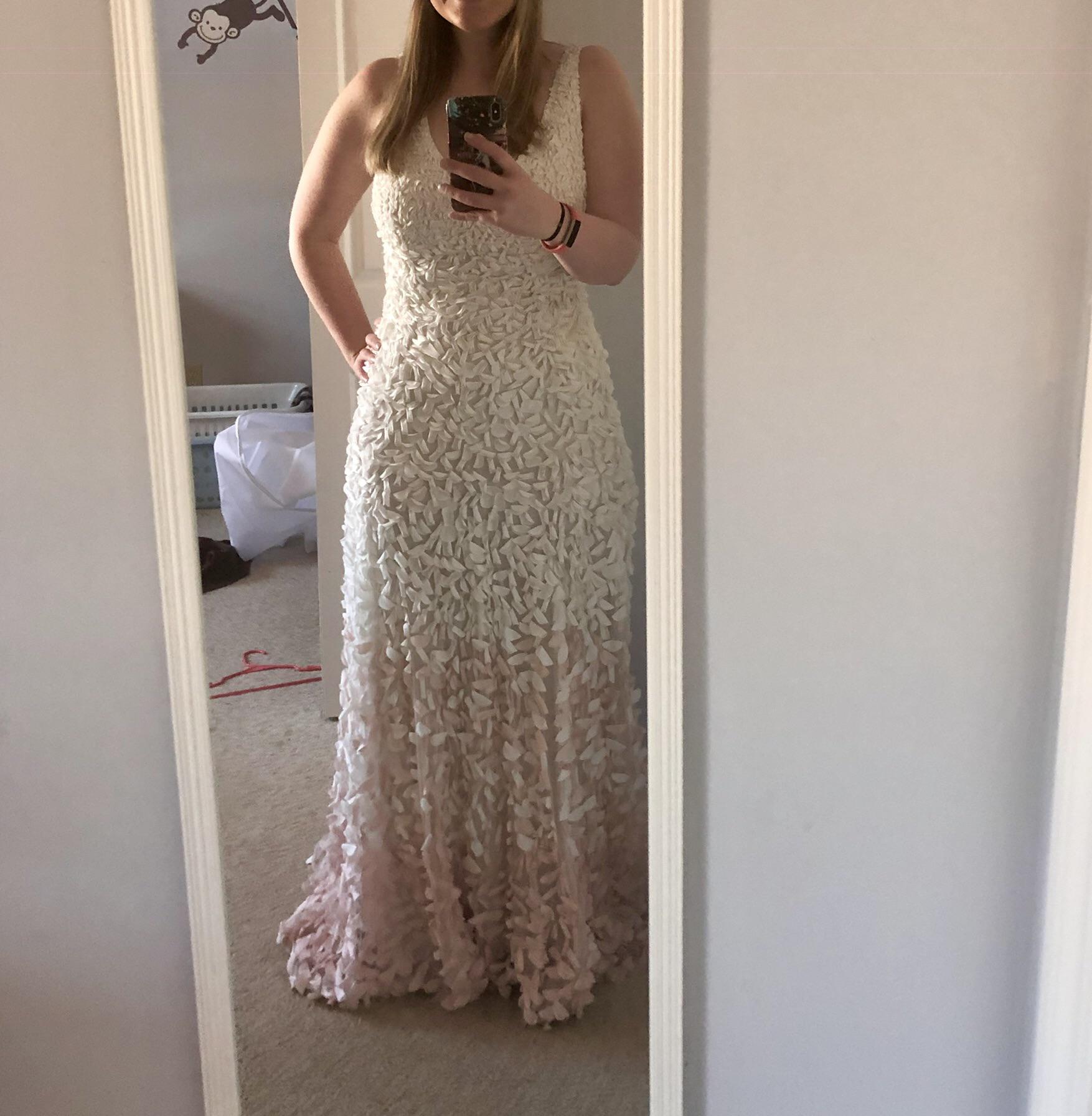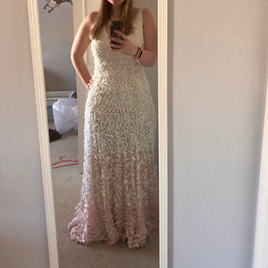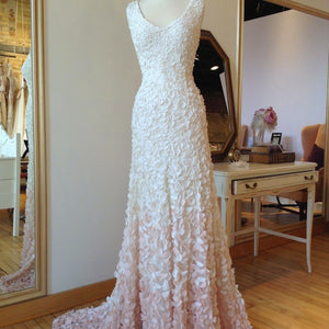 Size 12 and 14.  Has been tried on in store, but never worn outside the salon.  In excellent condition. Retail price: $2,195.