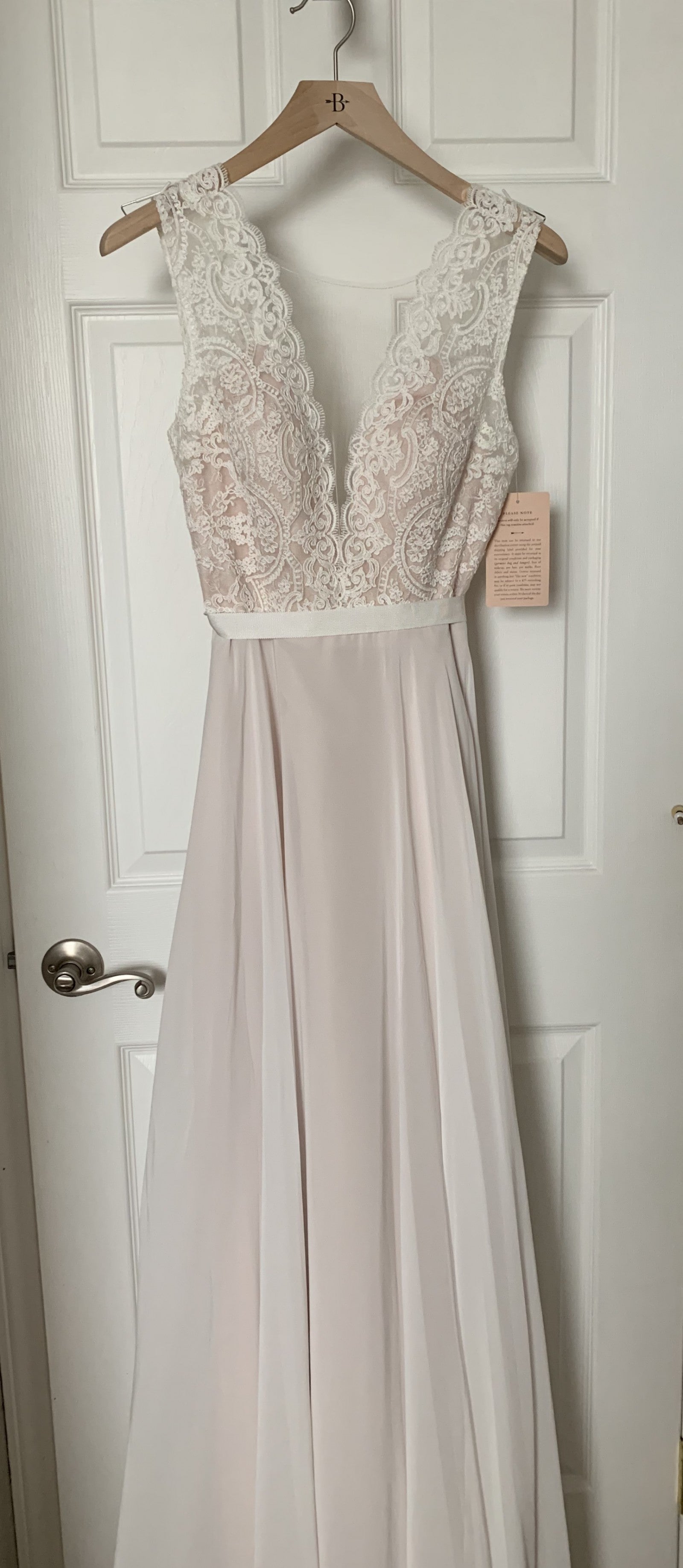 Size 6. Brand new, with tags, never worn! Does not come with sash (any sash would love beautiful with this gown!). Retail price: $1.050!