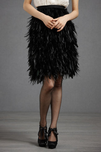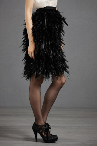 Fluffy plumage is hand-sewn on to form-fitting silk.