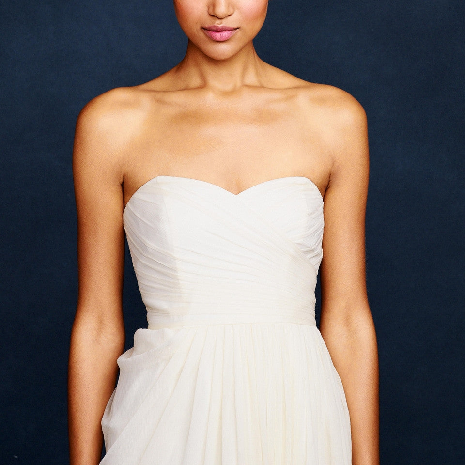 Talk about versatile: This dress can work for bridesmaids, brides and those who just want something pretty to wear. An asymmetrically draped bodice makes it flattering for almost all figures, while an elegant side-swoop detail on the skirt gives it unexpected character. Added bonus: There is an interior corset for extra support, so you can dance all night without worrying about wardrobe malfunctions.