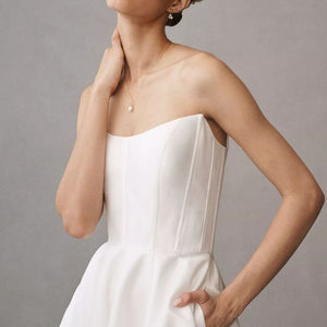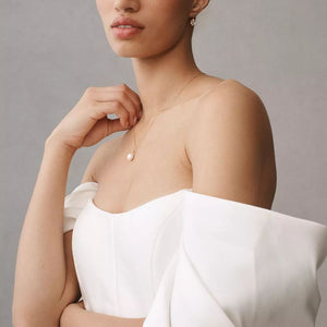 The Jenny by Jenny Yoo Cassie Off-The-Shoulder A-Line Taffeta Wedding Gown embodies classic romance with its elegant off-the-shoulder neckline and timeless A-line silhouette, while the luxurious taffeta fabric drapes gracefully to create a look that's both sophisticated and effortlessly chic for the modern bride.