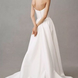 Has been lightly tried on in store and has minor dust along the hemline (not an issue since most brides will need to shorten the dress). Otherwise the dress appears to be in like new condition.  Current style.  Retail price: $1,895.