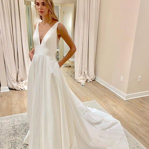 The best way to update the classic taffeta ballgown? Define the waist, add pockets, and most importantly, make it backless!