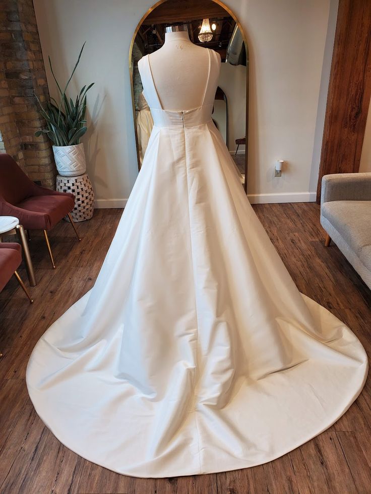 Has been tried on in store, but appears to be in excellent condition. Current style. Recent price: $1,300.