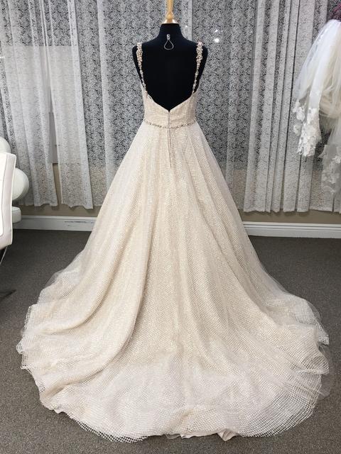 Size 12. Sample gown, but in like new condition. Has been tried on in store, but has no noticeable signs of wear. Never worn outside the salon and never altered. This gown is absolutely stunning! Retail price: $3,699!